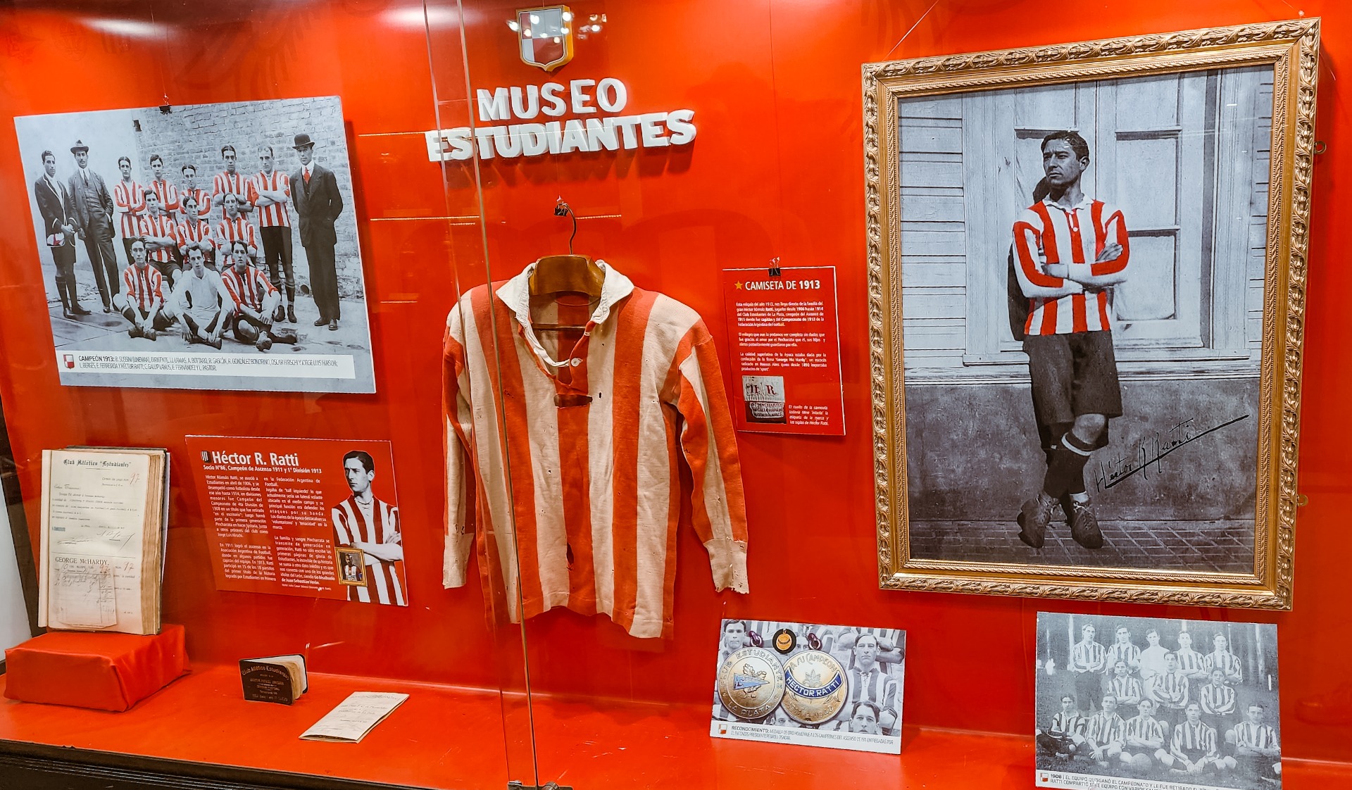 A las 19:00 empezaron a llegar los primeros socios e hinchas de Estudiantes, y lentamente se acercaron a las tres vitrinas que se estrenan. Una de ellas es llamada "noche de brujas" con remeras, botines y objetos que utilizó el mismísimo Juan Sebastián Verón durante su estadía en el club como jugador. Otra vitrina la denominan "pinchas de selección" que exponen remeras y recuerdos de ex jugadores de Estudiantes que vistieron la camiseta Argentina. Y la frutilla de postre, es la vitrina central del museo. "La camiseta más antigua, vuelve a casa", así lo señala Estudiantes. La casaca utilizada por Héctor Ratti, campeón con Estudiantes en 1913, se expone para todo el pueblo pincha, una recuperación histórica del club, hasta el momento la remera más longeva del museo era de 1929. Las emociones se hicieron presente, el homenaje a Héctor finalmente se cumplió, los hinchas posaron frente a la vitrina, se sacaron fotos, y sorprendieron por un dato de color. Héctor es el tío bisabuelo de Juan Sebastián Verón, ¡de no creer! Este campeón del 11 y 13 defendiendo los colores del León, tiene su merecido homenaje y reconocimiento, con los objetos recuperados se refunda la historia de Estudiantes y comienza a darse mayor visibilidad a una parte de la vida del club perdida o que el hincha no tenía tan presente.